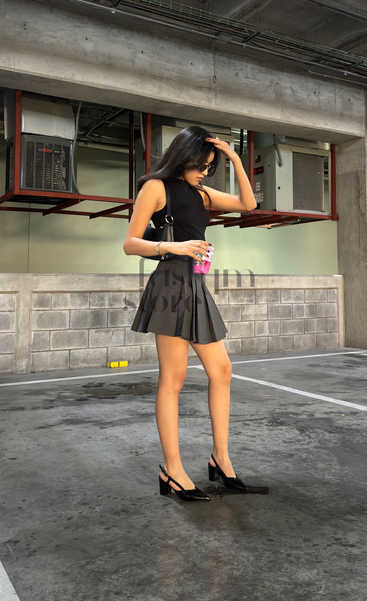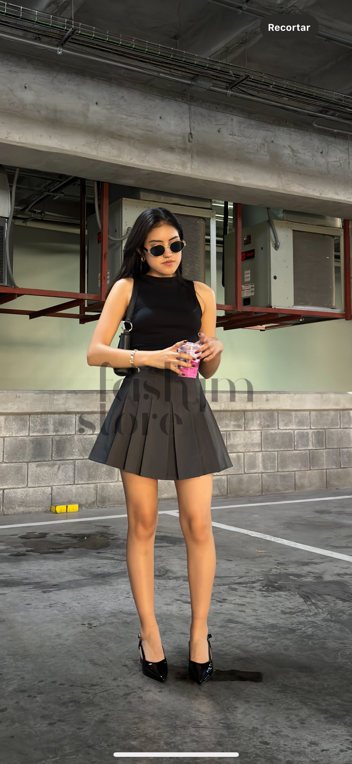 "Falda de tablones con cinto, perfecta para un look moderno y femenino. Disponible en tallas S, L y XL por solo $360. ¡Súper bonita y a la moda!"