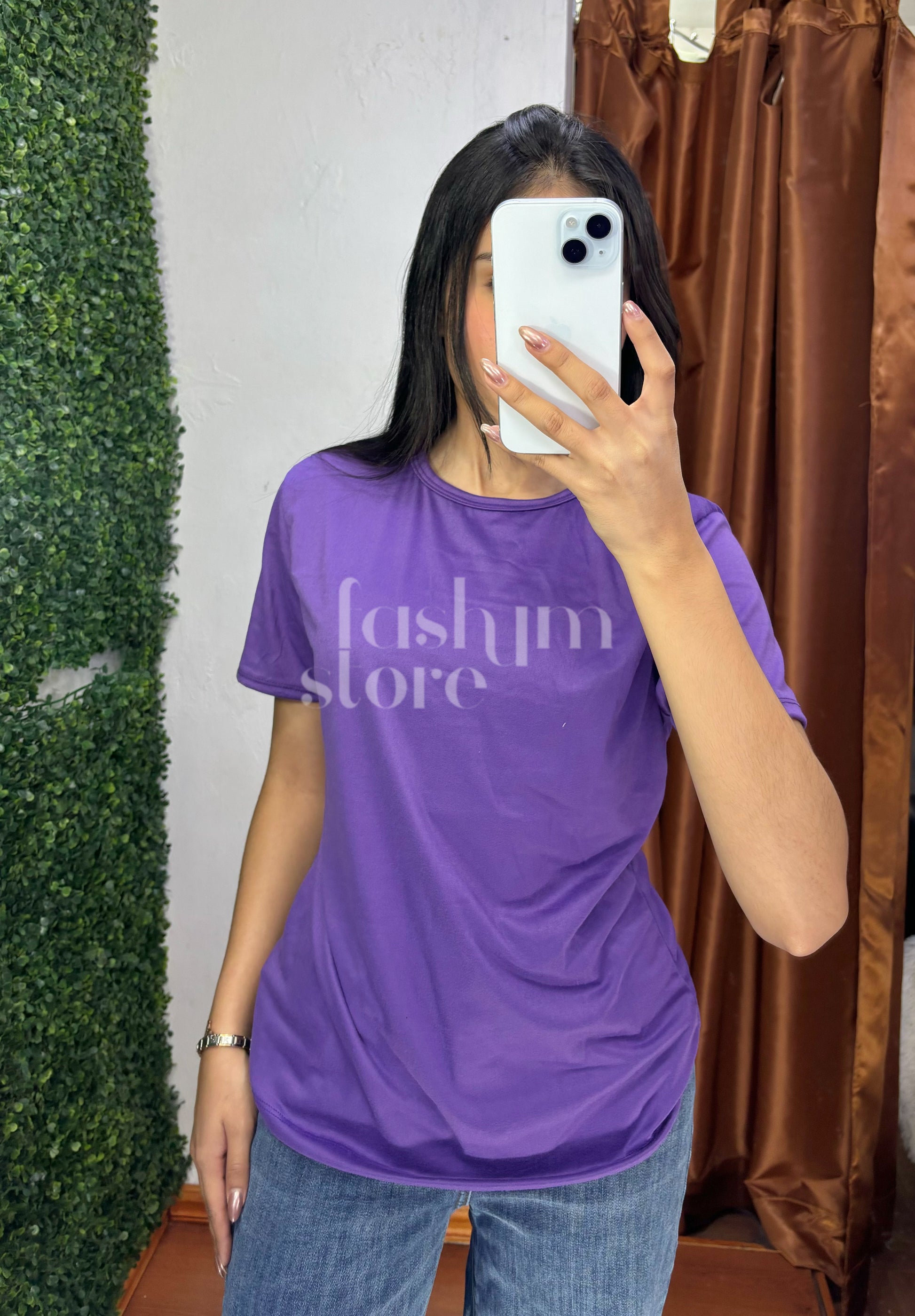 Playera lisa en color morado, perfecta para cualquier ocasión. Tela suave y cómoda, ideal para un look casual o para combinar con tu outfit favorito. Unitalla por solo $130.
